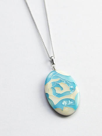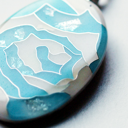 透明感のある青が清々しい、薔薇をモチーフにしたペンダント。尾張七宝の質感をとことん追求した逸品です。