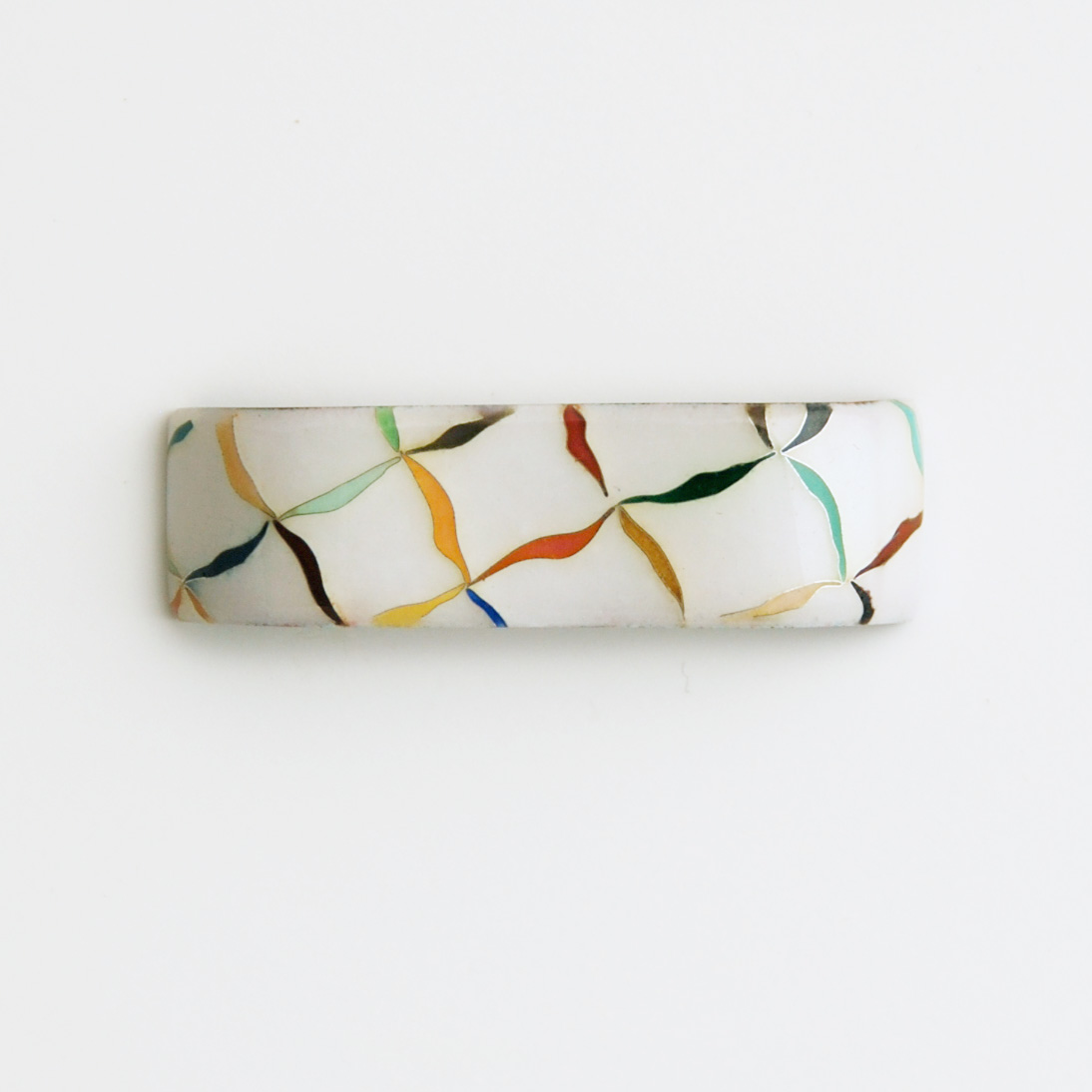 七宝繋の文様をアレンジしたデザイン。色彩豊かに艶やかさを引き立たせ、テーブルに華を添えます。