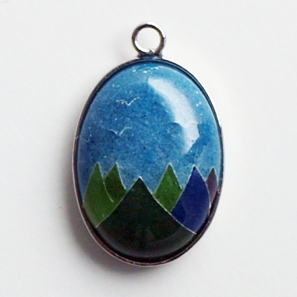 のんびりとした風景に鳥も飛ぶペンダント。