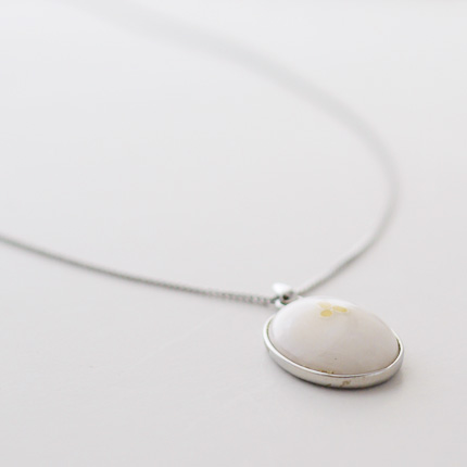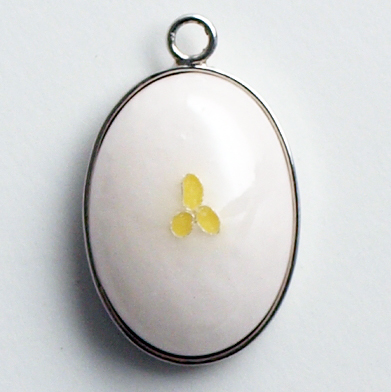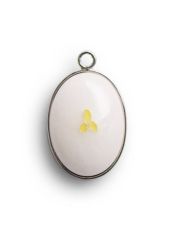 シンプルみつばのペンダント。チェーンを付け、紙箱入りでお届けします。七宝部分 H:20mm×W:15mmチェーン 46cm