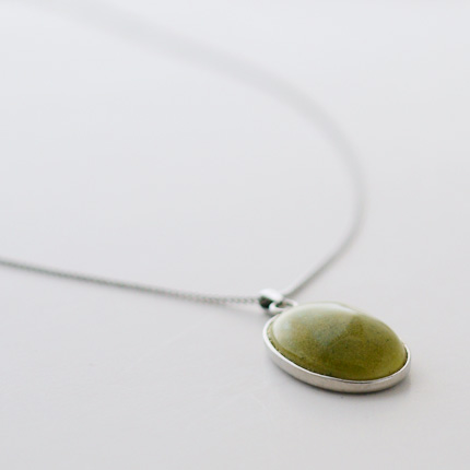 萌ゆる若葉のペンダント。チェーンを付け、紙箱入りでお届けします。七宝部分 H:20mm×W:15mmチェーン 46cm