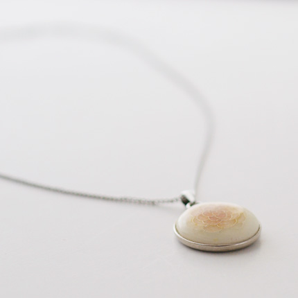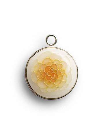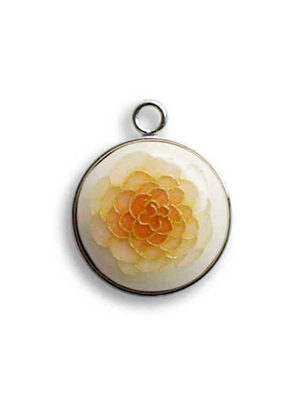 絶妙な色使い、美しい菊のペンダント。チェーンを付け、紙箱入りでお届けします。