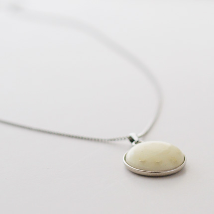 やさしいムードのペンダント。チェーンを付け、紙箱入りでお届けします。