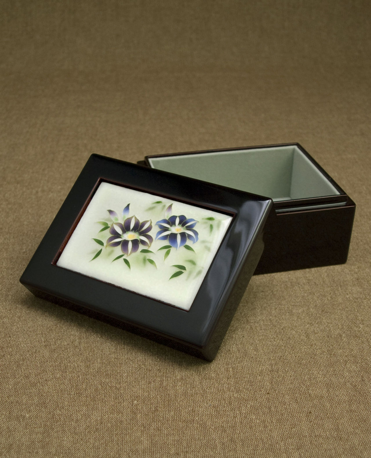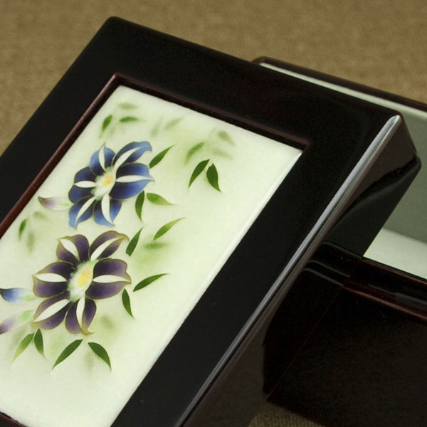 伝統的技法を惜しむことなく使った尾張七宝を、会津溜塗りの上質な小箱に組み合わせました。