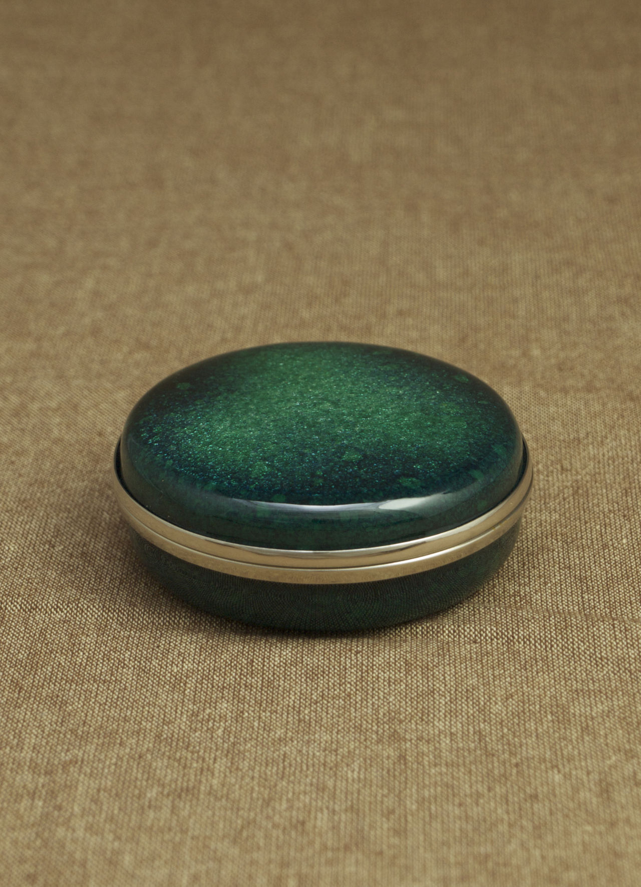 尾張七宝の複雑多様な色彩を巧みに利用し、小さな中に宇宙を閉じ込めました。