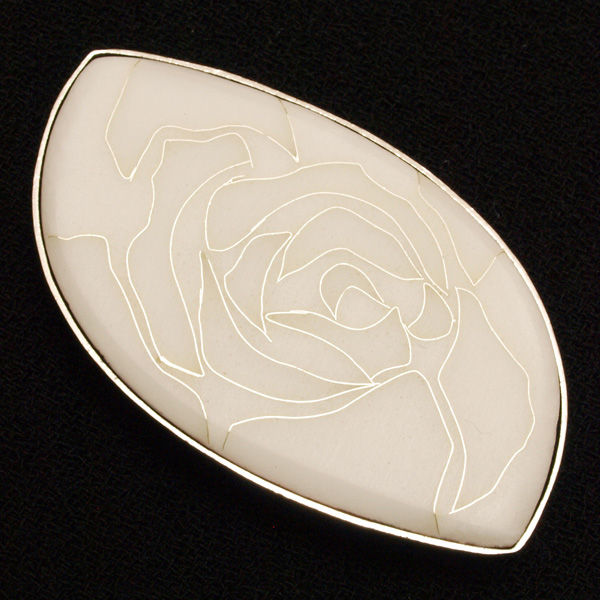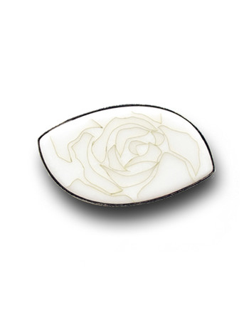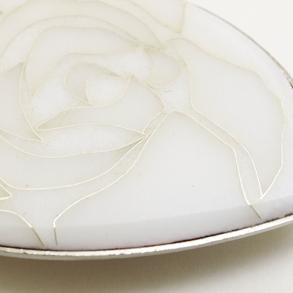 一見シンプルながら、緻密に細工されている銀の植線が輪郭を際立たせ、微妙に異なる2色の白によって変化を付けています。