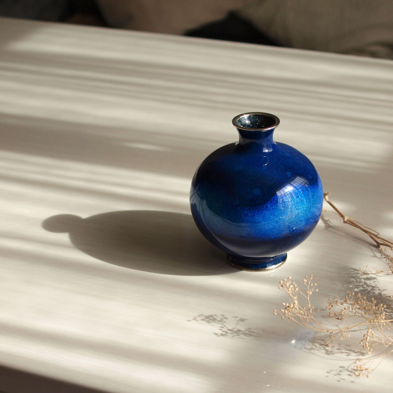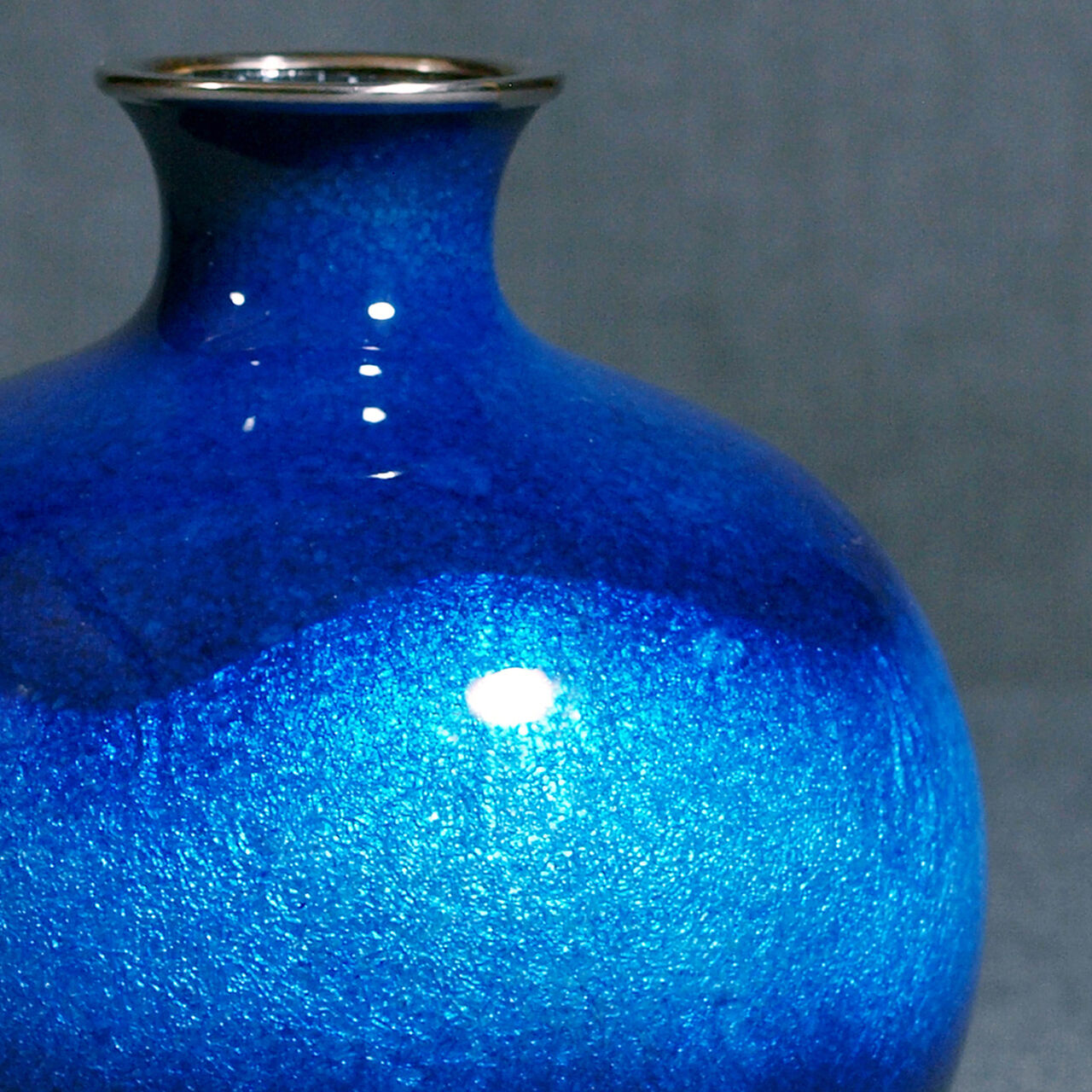 尾張七宝の複雑多様な色彩を巧みに利用し、花瓶の中に宇宙を閉じ込めました。