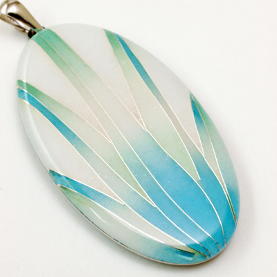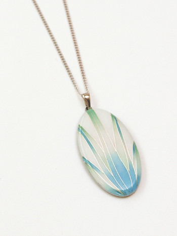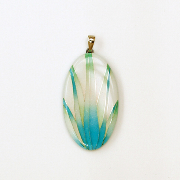 淡い緑から水色へのグラデーションと、滑らかな植線が際立つ作品です。