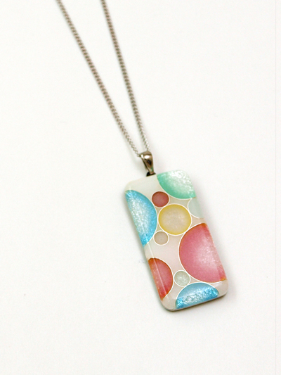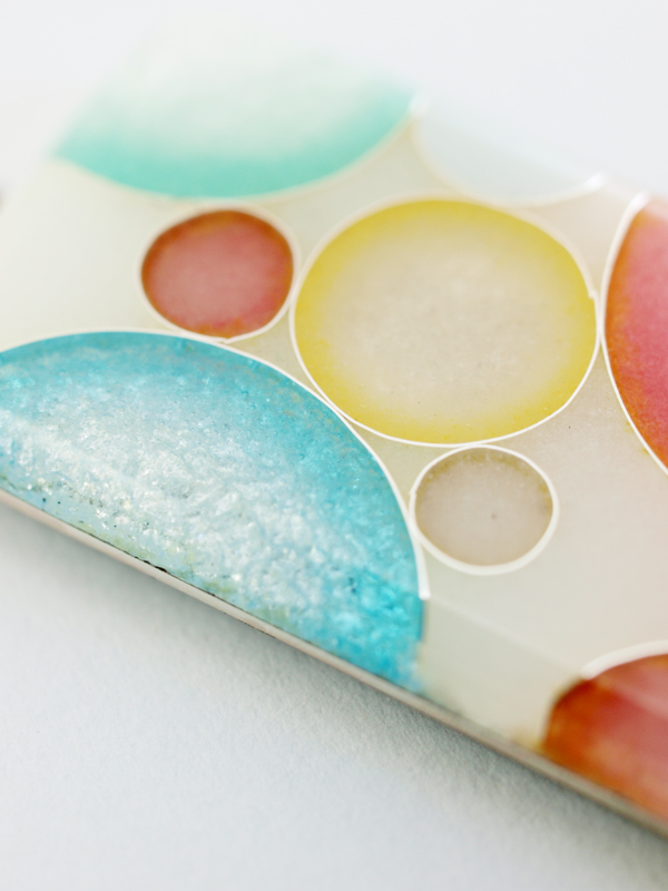 シンプルな構成ながら、銀貼技法によって透明感と色彩の奥行きを感じさせ、可愛らしさの中に上品さと華やかさをもたせました。シンプルだからこそ誤魔化しがきかない作品で、各工程丁寧な仕事を心がけて製作しています。