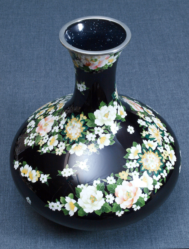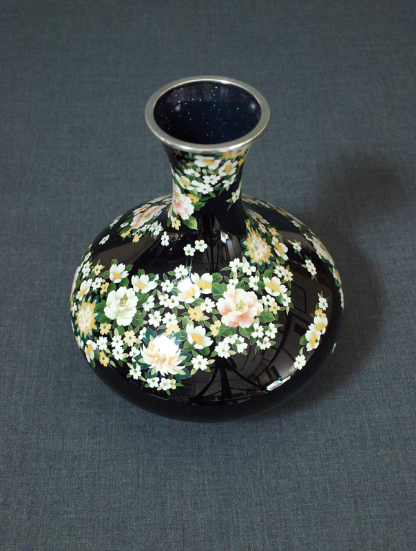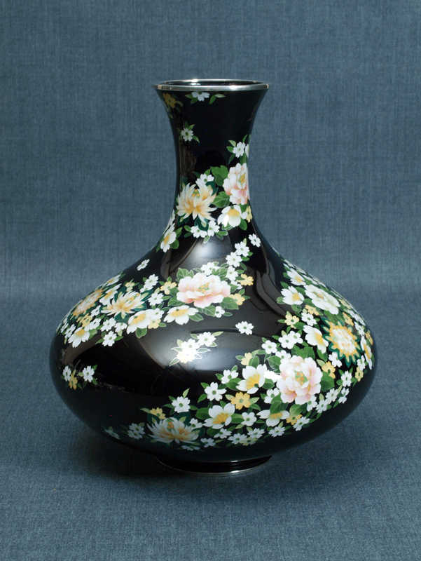 細い首部分から繋がる豪華な花柄が、優雅で艶やかな世界を表現している。