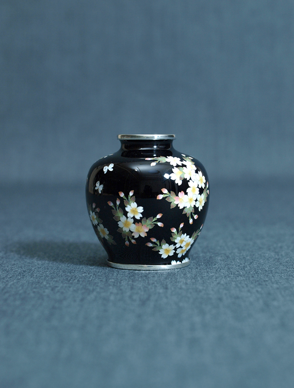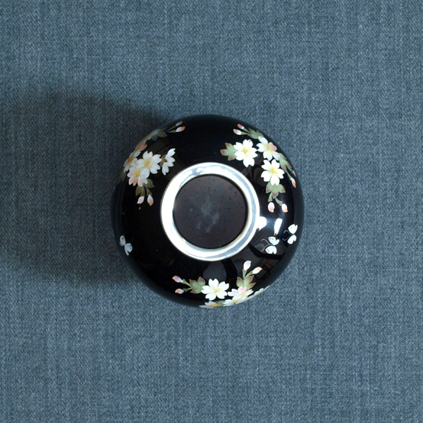 2寸玉形 黒透 桜に蝶 壺
