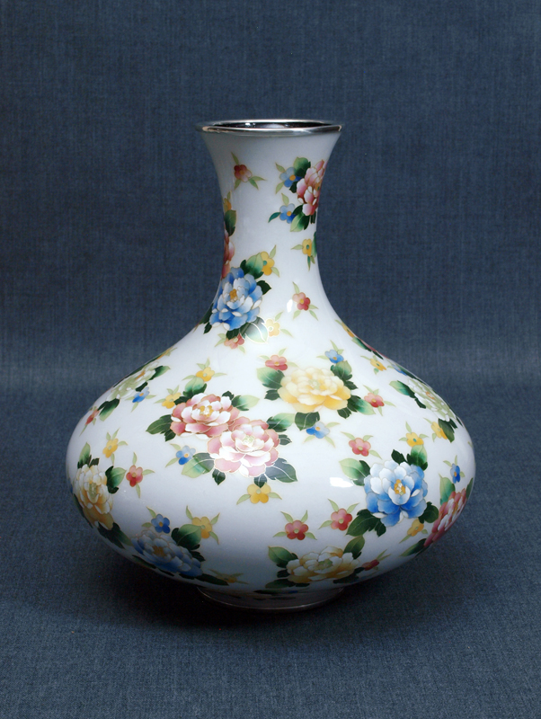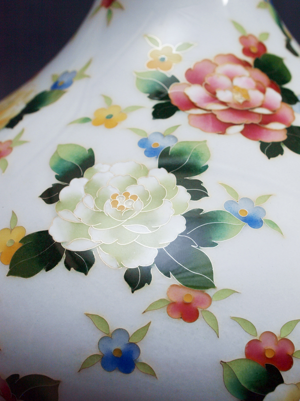 7寸 白地 花づくし文 壺