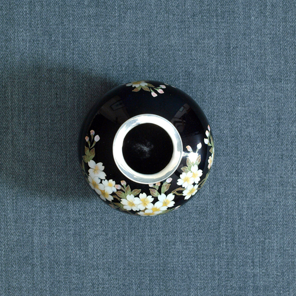 掌に収まる程度のサイズでありながら、熟練の技で磨き上げられた極上の質感は、緻密な有線七宝をより引き立て大きな作品にはない魅力を放ちます。