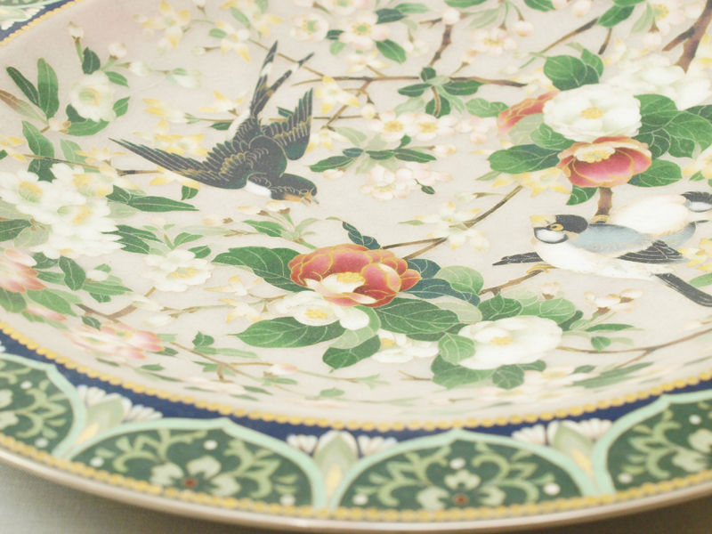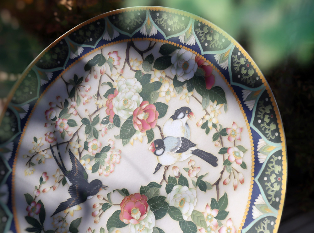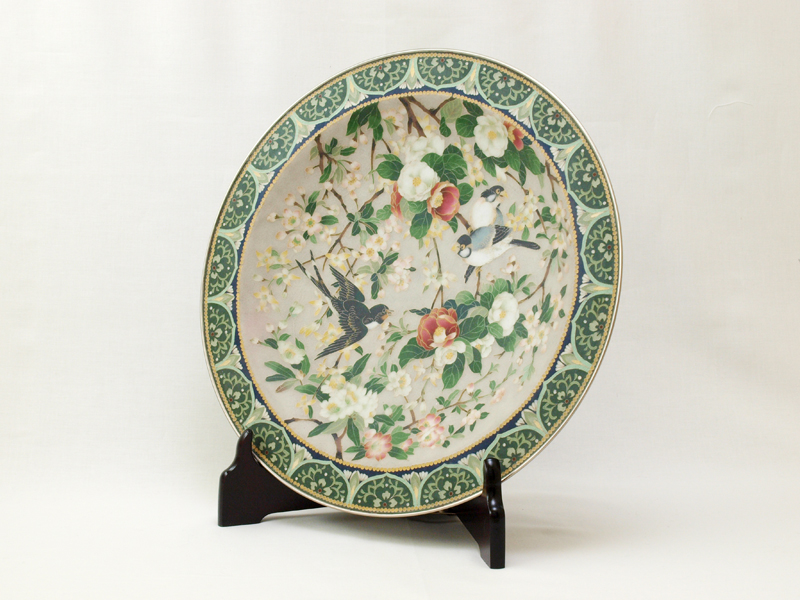 古典的な構図で花鳥図が描かれた作品ですが、どこかモダンな印象も感じる作品。