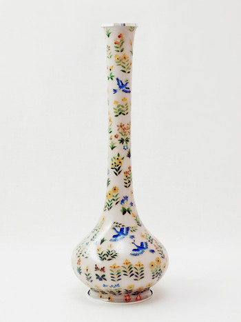 細長い首長形が美しく印象的な作品だが、そのバランス故に焼成するにあたっては油断が許されない緊張感が伴う作品である。